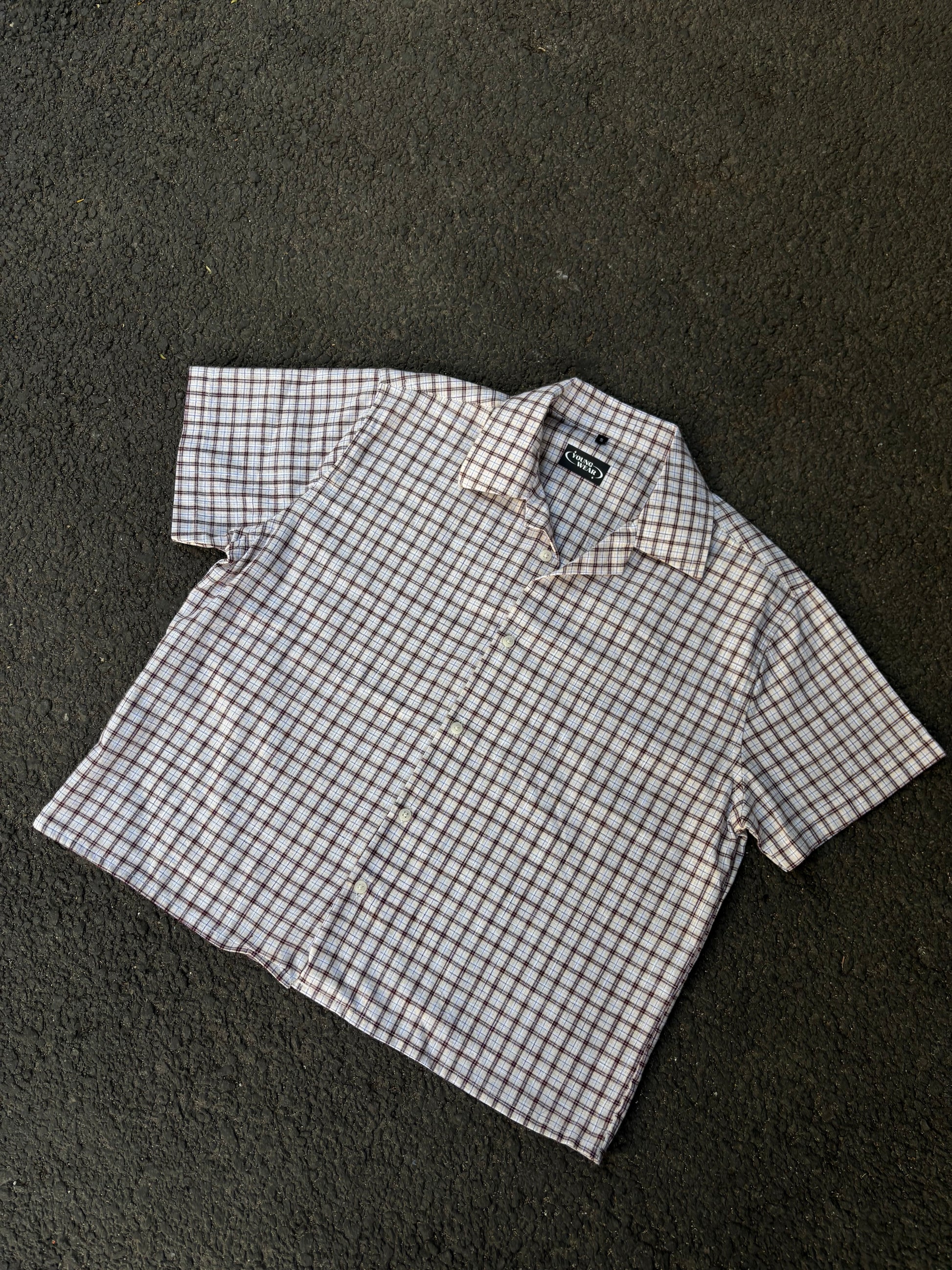 Mocha checks cropped boxy shirt