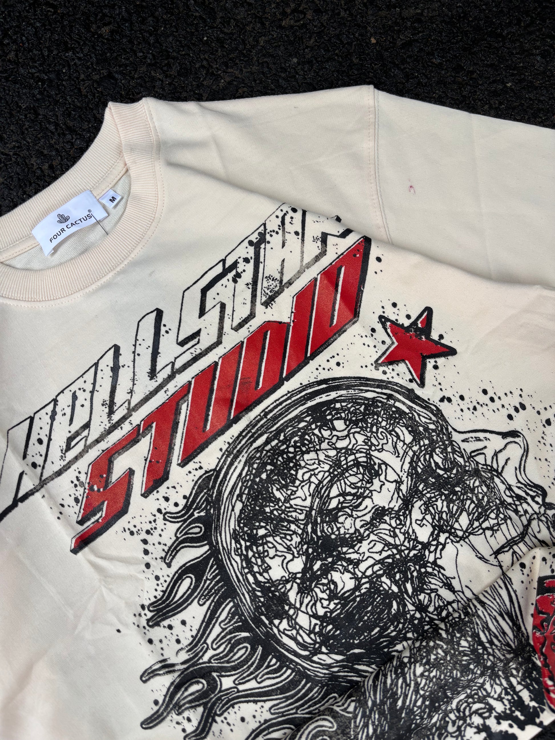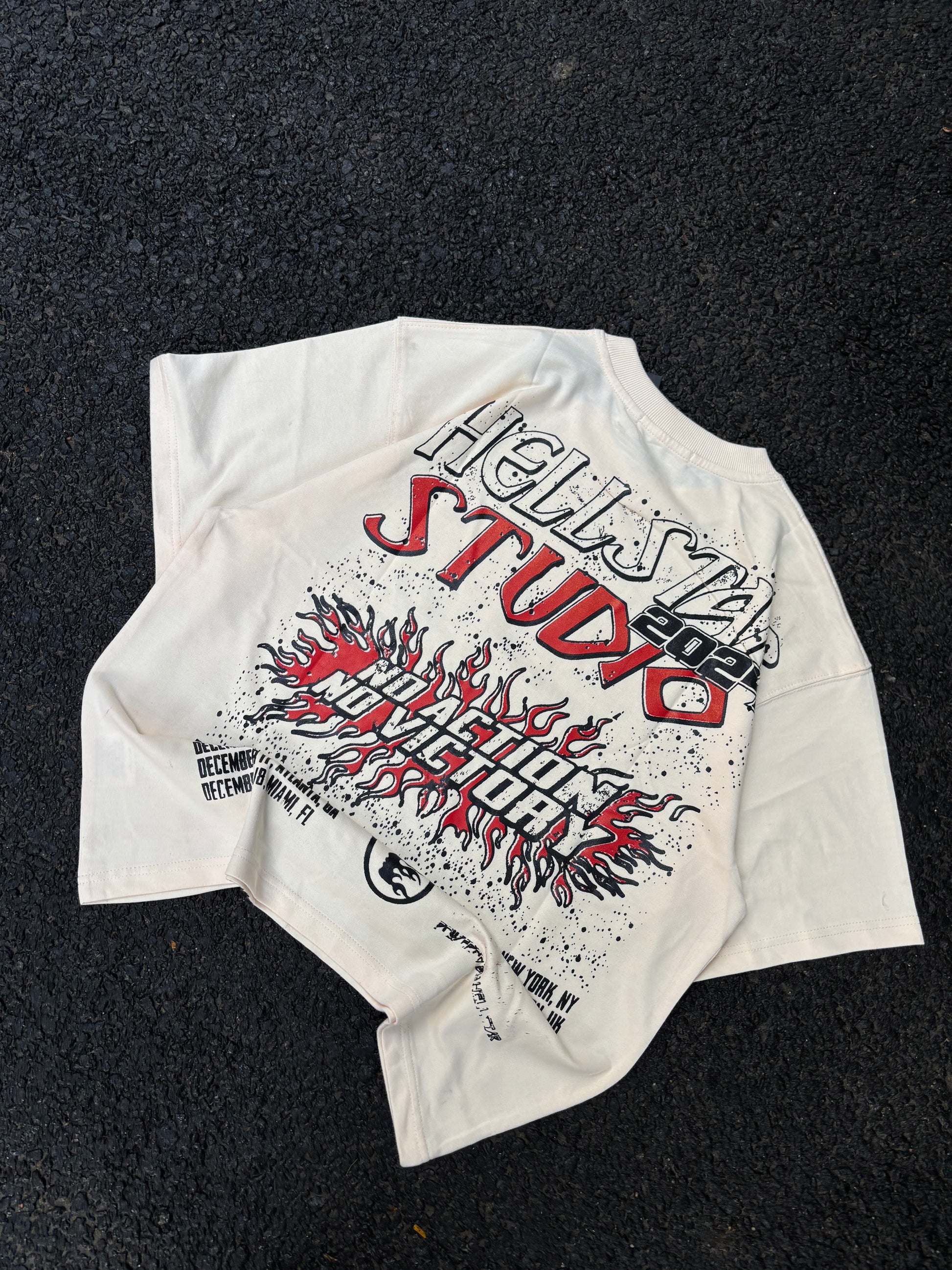 No action beige oversized tee